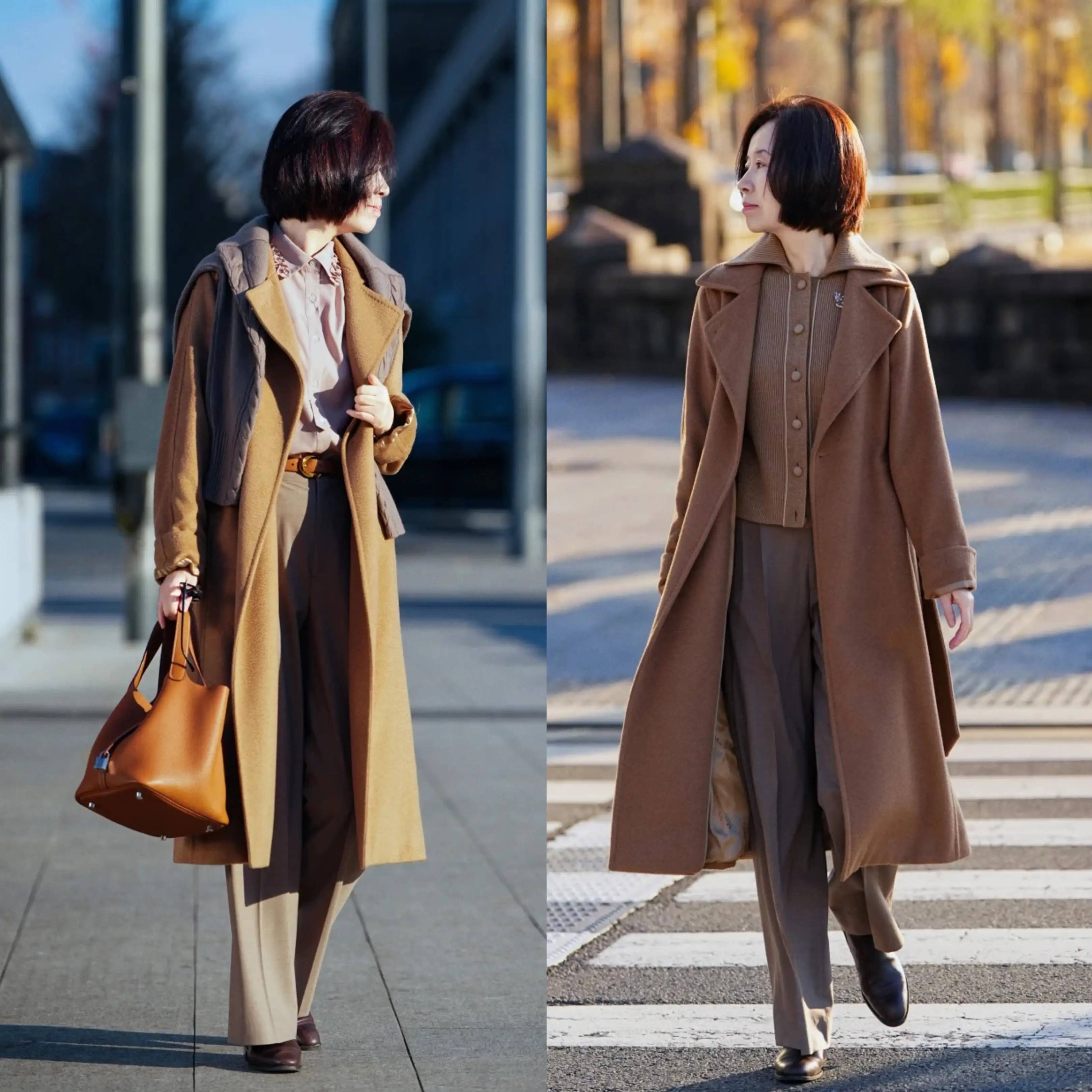 长款外套搭配烟管裤,是打造高级感的经典公式。尤其长款大衣与烟管裤组合,利落线条能修饰身形、拉长比例,尽显干练气场。选择大地色系或同色系搭配,整体和谐统一,低调又显质感,轻松营造温柔大气的氛围,简约却自带高级格调,日常通勤都很合适。