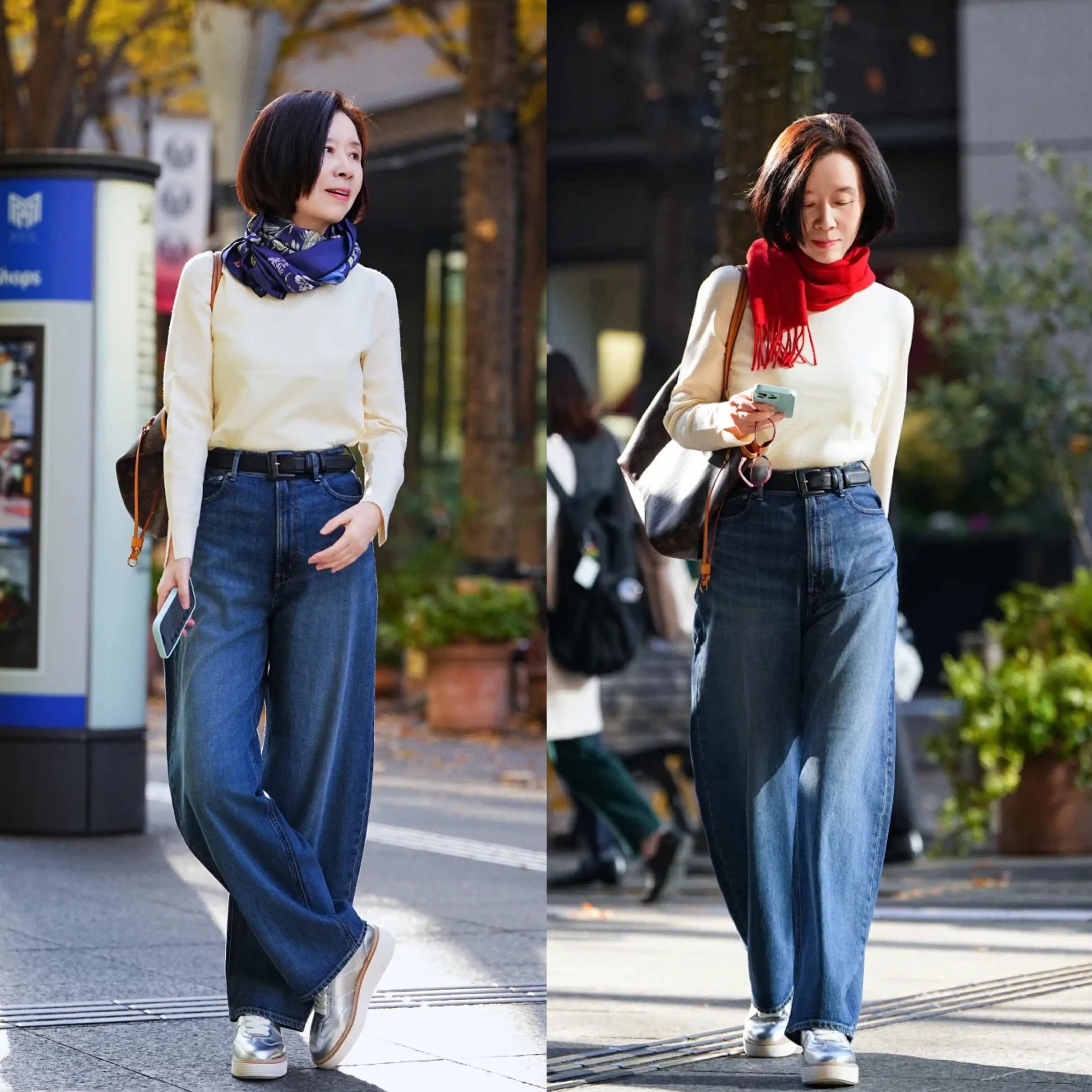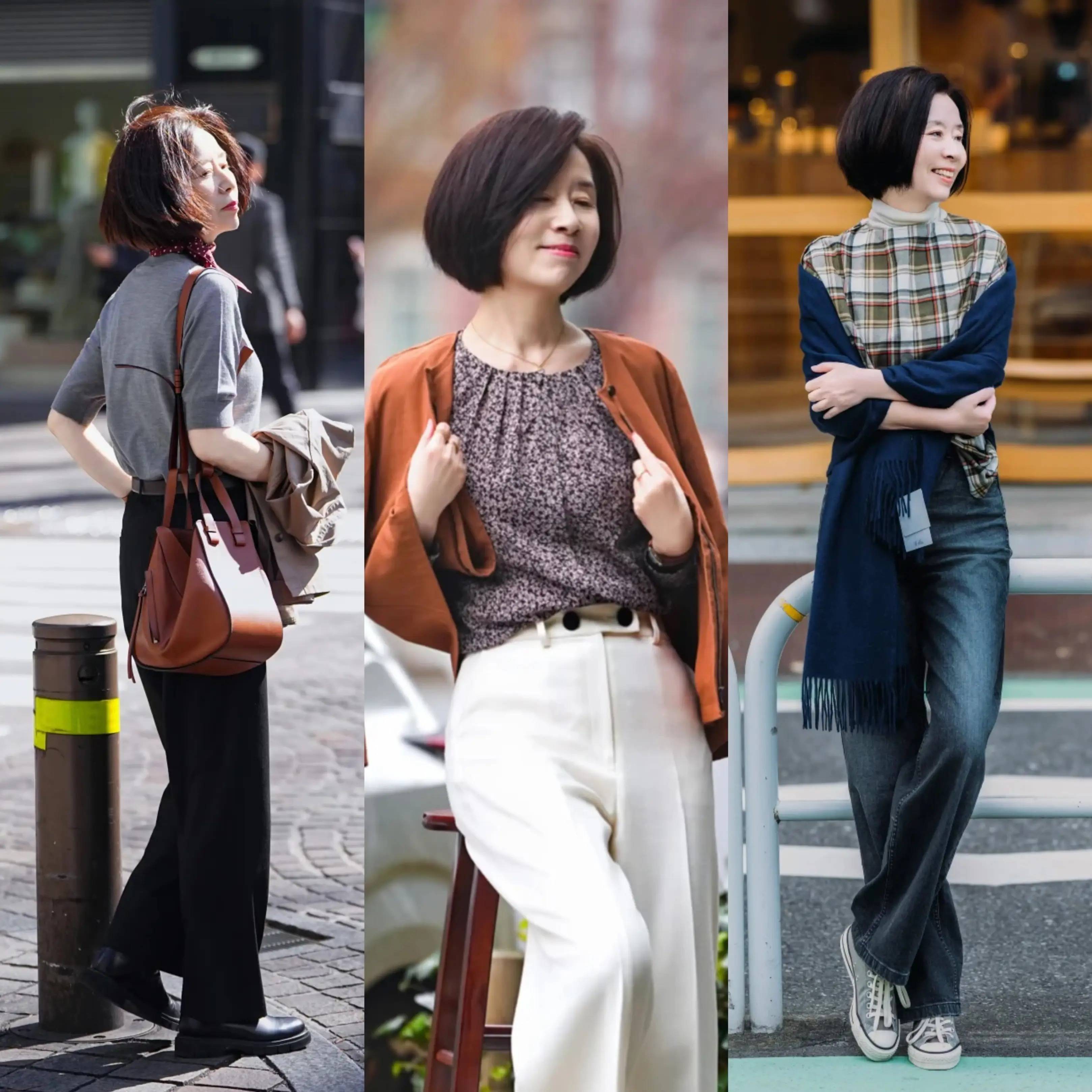 阔腿裤堪称中年穿搭的遮肉神器,宽松裤腿能巧妙修饰胯宽、腿粗等身材问题,随性慵懒中自带高级气场。